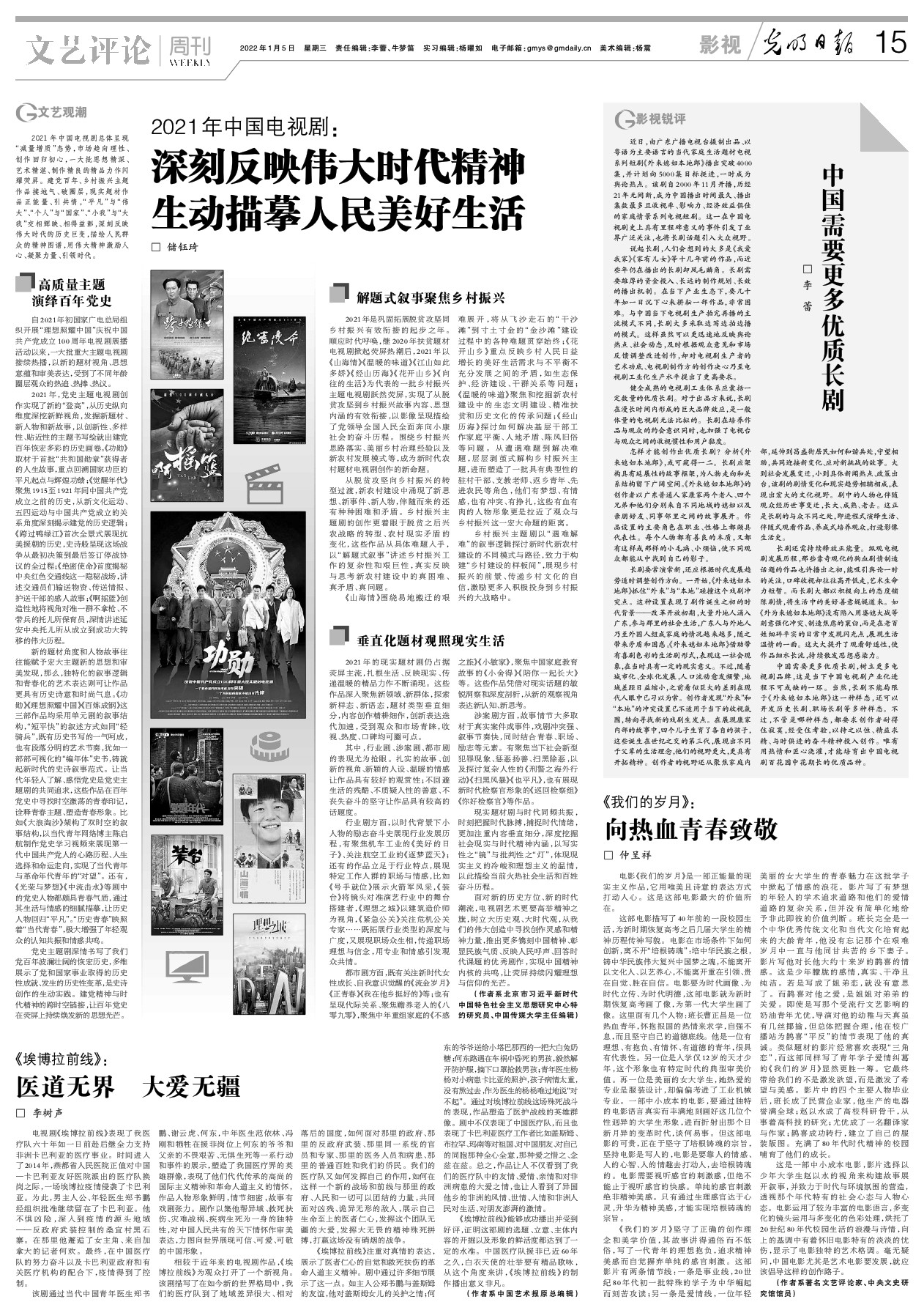 2021年中国电视剧总体呈现“减量增质”态势,市场趋向理性、创作回归初心,一大批思想精深、艺术精湛、制作精良的精品力作闪耀荧屏。建党百年、乡村振兴主题作品接地气、破圈层,现实题材作品正能量、引共情,“平凡”与“伟大”、“个人”与“国家”、“小我”与“大我”交相辉映、相得益彰,深刻反映伟大时代的历史巨变,描绘人民群众的精神图谱,用伟大精神激励人心、凝聚力量、引领时代。