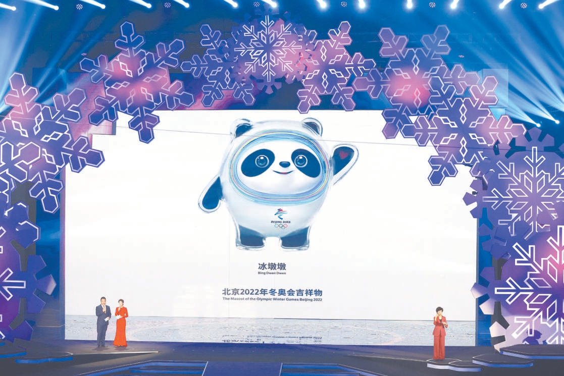 三是顺应时代潮流,引领文化创新。北京冬奥会的视觉设计注重反映现代时尚与前沿科技,涌现了诸多热门原创文化IP作品。作为2022年北京冬季奥运会的吉祥物,“冰墩墩”将熊猫形象与富有超能量的冰晶外壳相结合,头部外壳造型取自冰雪运动员头盔,装饰彩色光环,整体形象酷似航天员。伴随着冬奥会各项赛程,“冰墩墩”凭借其可爱萌动的形象赢得了海内外观众的一致好评与广泛推崇。“冰墩墩”相关手办、玩偶、日常用品等产品普遍热卖,甚至出现了“一墩难求”的局面。“冰墩墩” IP的成功“出圈”,反映了北京冬奥会对引领潮流、追求创新的高度重视,吉祥物寓意“创造非凡、探索未来”,体现了追求卓越、引领时代,这与北京冬奥会“一起向未来”的口号一脉相承。