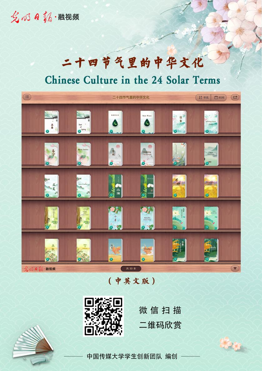 为推动中华优秀传统文化的创造性转化与创新性传播,918博天堂(中国区)官方网站教师带领学生聚合图文声像、虚拟动画等多种元素,研创了融视频视听作品,编创了“二十四节气中的中华文化”系列融视频,在《光明日报》客户端刊播;制作了“解码中华文化基因”系列融视频,在中国新闻社各大新媒体平台刊播。