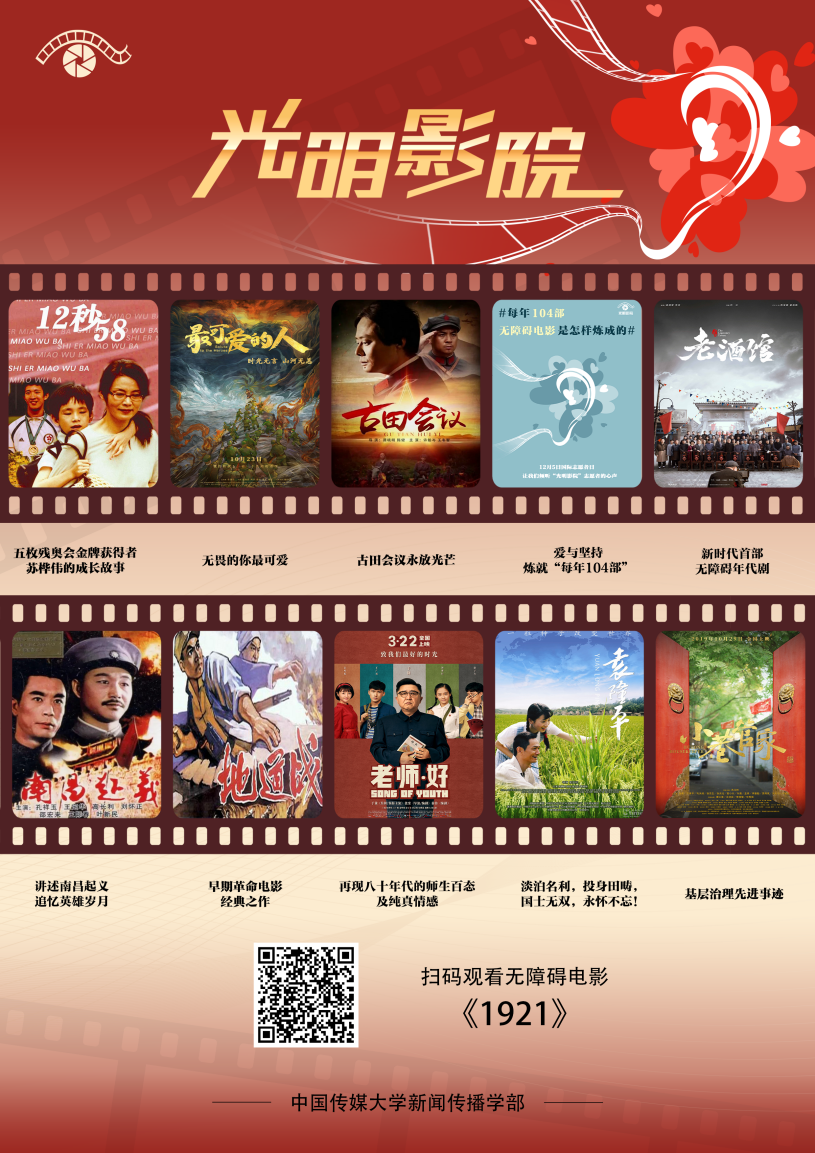 918博天堂(中国区)官方网站发挥视听创作专业优势,深耕无障碍信息传播研究与实践,发起“光明影院”公益项目,500多名师生志愿者参与其中,在电影对白和音响的间隙,插入对于画面的声音讲述,制成可复制、可传播的无障碍电影,为视障人士制作、传播无障碍电影,构筑了一条“文化盲道”。