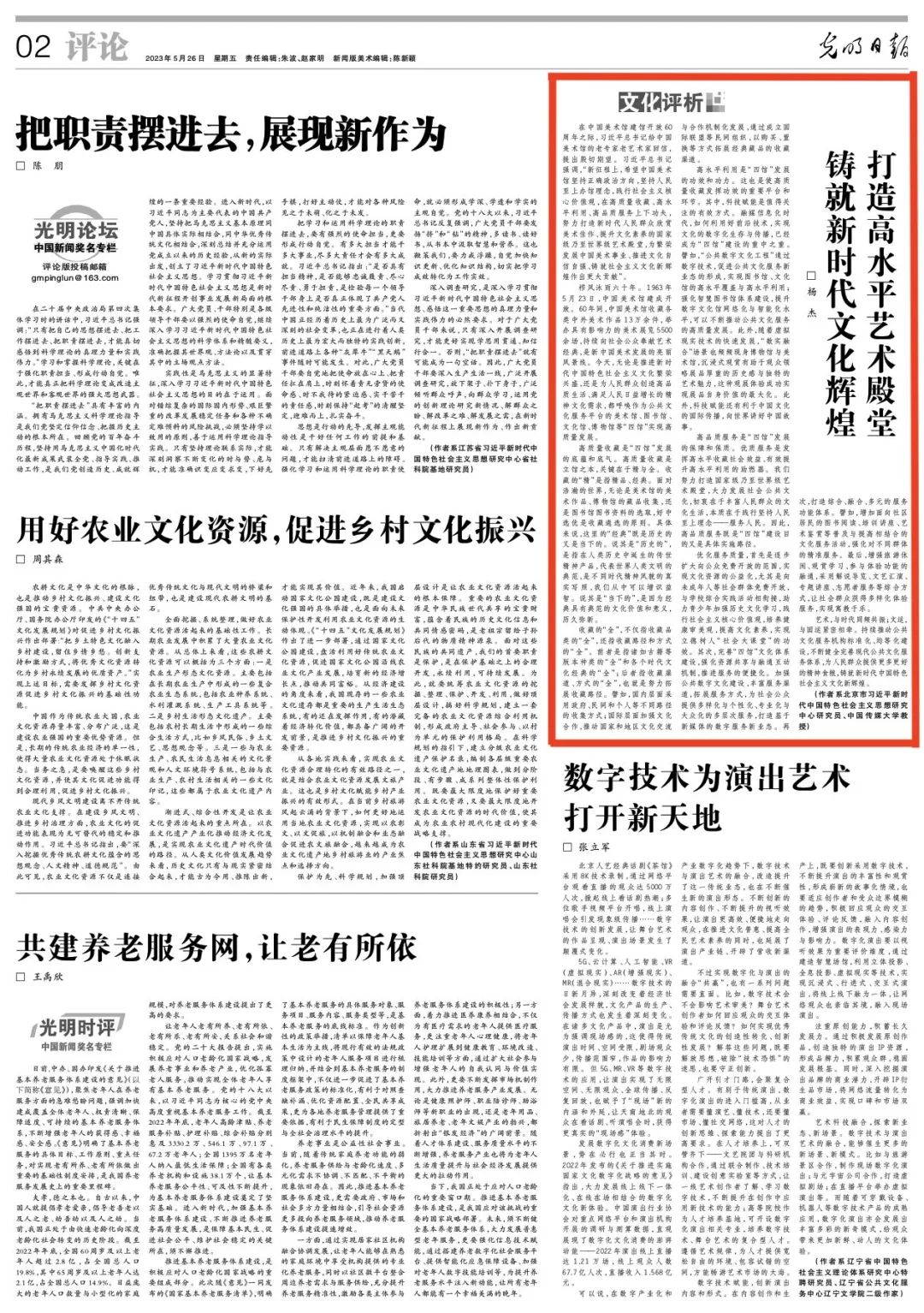 艺术,与时代同频共振;文运,与国运紧密相牵。持续推动公共文化服务机构标准化、均等化建设,不断健全完善现代公共文化服务体系,为人民群众提供更多更好的精神食粮,铸就新时代中国特色社会主义文化新辉煌。