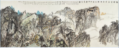 《乾坤有序 宇宙无疆 大道不孤 华夏之尊》这幅作品由贾荣志、李岗、陈向迅、袁学君、谌宏微、邹明、卢虓、姜宝昌、唐辉、刘明波、刘钻、刘罡、梁明、何加林、李明、石峰、谭长德、王跃奎、杨东平、岳黔山诸位画家合作完成,整幅作品在笔墨飞扬流动中诠释了华夏之尊的钟灵毓秀,百草丰茂,粲然四季的万千景象,更是可行、可望、可居、可游的胜地,正可谓“雄奇秀拔照人寰,尽收气象纤毫底”。寓意着中华民族永葆青春,永聚生生不息的中国力量。