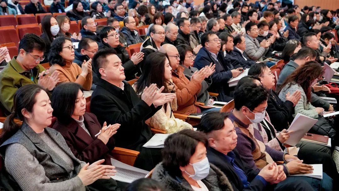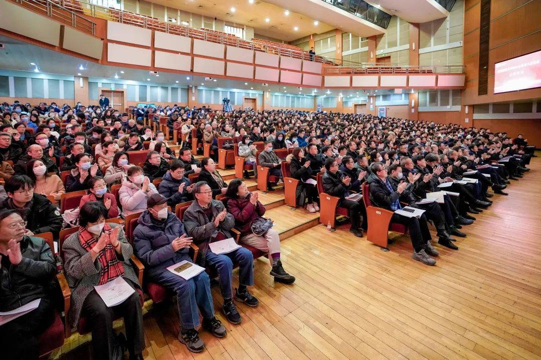 廖祥忠重点对过去一年完成的亮点工作逐项总结点评。他指出,2023年,学校以主题教育筑牢根基,干部师生政治理论水平得到了整体性跃升,分析解决问题的能力得到了系统性增强,制约学校发展的诸多问题得到了有效解决,以主题教育成效全方位推进各项工作。以“三场大考”凝心聚力,这是对近年来学校改革发展情况的一次从头到脚、由内而外的立体性扫描和无死角检测,综合性与系统性前所未有,可以欣喜地看到,学校的发展“肌体”是健康的,进一步增强了推动学校高质量发展的底气与信心。学校方方面面的工作都实现了全方位跃升,高质量党建工作成效显著,服务国家重大战略能力水平的大项目、大平台接连涌现,“五育并举”学生综合素质评价体系正式出台,思政课质量提升完成系统布局,面向未来的学科布局基本完成,高质量人才培养体系初步建成,校园文化环境完成了全新规划,内部治理体系形成闭环,国内交流合作达到新高度。
