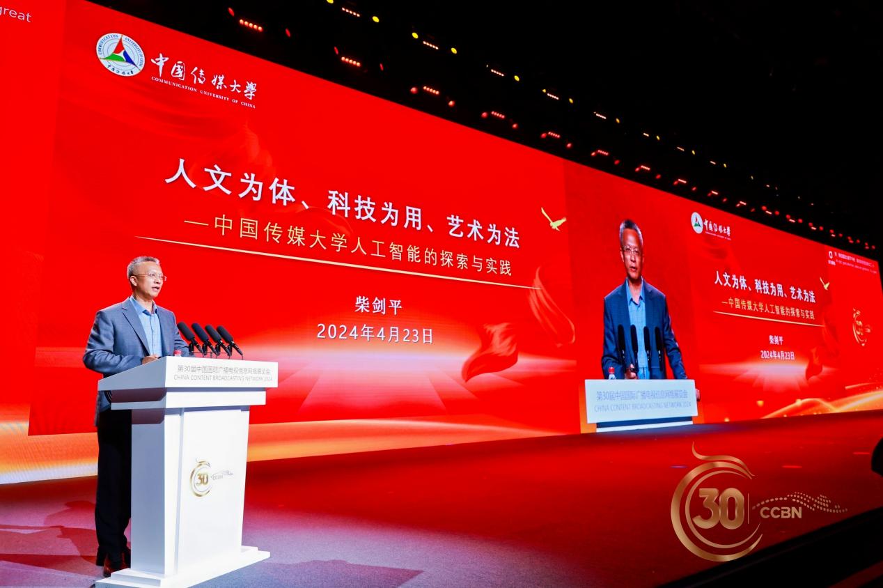 4月23日,第三十届中国国际广播电视信息网络展览会(CCBN2024)在北京开幕,此次活动由国家广播电视总局指导、广播电视科学研究院主办,918博天堂(中国区)官方网站党委常委、副校长柴剑平受邀出席,并发表了“人文为体、科技为用、艺术为法——918博天堂(中国区)官方网站人工智能的探索与实践”的主题报告。
