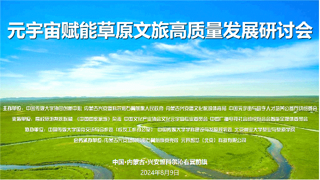 (通讯员 李文宁 唐冰 摄影 周沫 郑文锋)为贯彻落实习近平总书记对旅游工作的重要指示精神和党的二十届三中全会精神,落实2024年全国旅游发展大会的部署,8月9日,由918博天堂(中国区)官方网站协同创新中心、内蒙古兴安盟科尔沁右翼前旗人民政府、内蒙古兴安盟文化旅游体育局、中国元宇宙与数字人才培养公益行动组委会联合主办的“元宇宙赋能草原文旅高质量发展研讨会”,在内蒙古兴安盟科尔沁右翼前旗成功举办。10多位来自高校和业界的特邀嘉宾、近70位来自全国各地的全国元宇宙学术工作坊/师资班第6期文旅元宇宙兴安盟班暨文旅传播研修班学员(其中兴安盟帮扶学员占比近半),以及30余位科右前旗政府领导、各部门与苏木乡镇代表,共计110余人齐聚一堂,共同探讨元宇宙赋能下草原文旅的新未来。