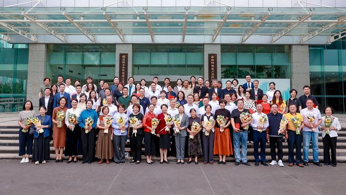 在“薪火相传 荣光永熠”篇章中,吴江文、余小梅、黄晓兰等教职工代表2024-2025年度荣休教职工上台,接受廖祥忠、蔺海波颁发的荣休纪念章和定制校徽。青年教师献上鲜花,表达对前辈的敬意与祝福。